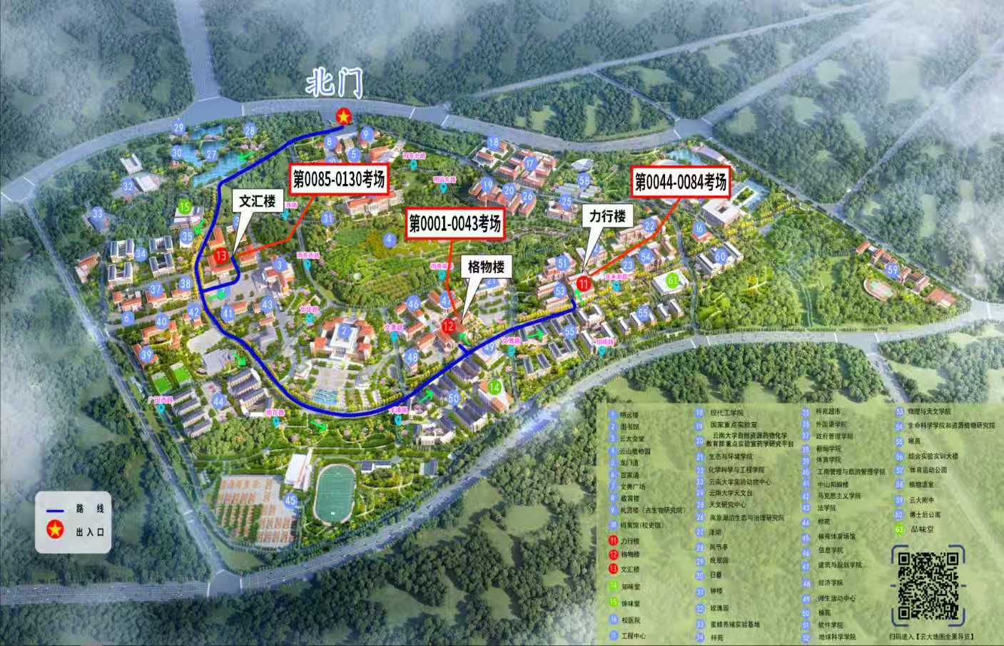 2.本考点将在呈贡校区北门入口、百家大道、格物楼、力行楼、文汇楼5个地点布置考场安排示意图。